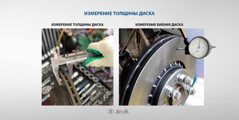 Чтобы оценить износ детали, применяется высокоточный штангенциркуль. Замеры осуществляются на 12–15 участках по всей поверхности ротора. Достаточно сильное биение тормозного диска ощущается при отклонении его толщины в соседних четвертях всего на 0,03–0,05 мм. Однако, даже если водитель не чувствует вибраций на руле, это не значит, что диск полностью исправен. Например, кольцевая выработка из-за воздействия колодок может не приводить к возникновению биений, но снижает площадь трения и, соответственно, эффективность торможения.