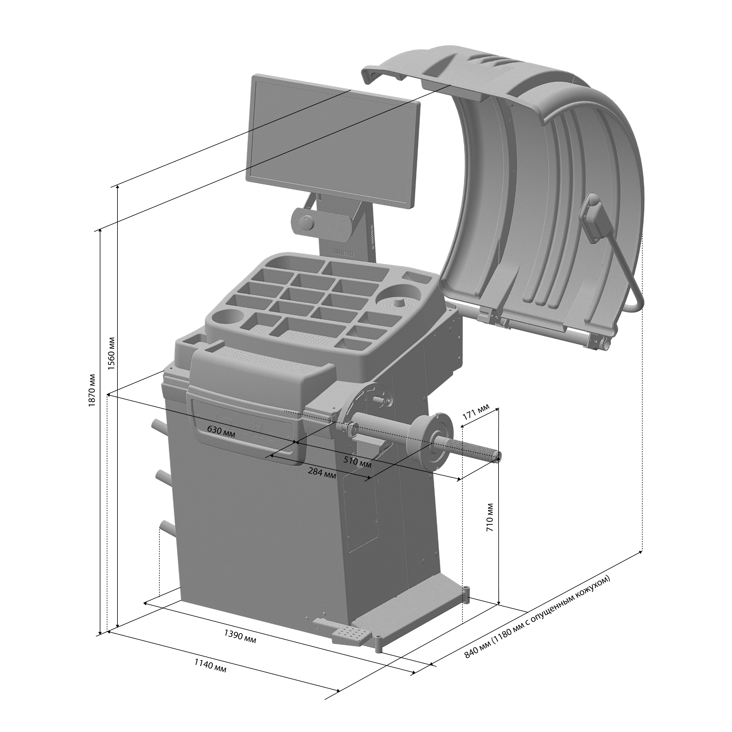 • Большой вылет вала - 284 мм. Удобно обслуживать даже самые большие и широкие колеса.